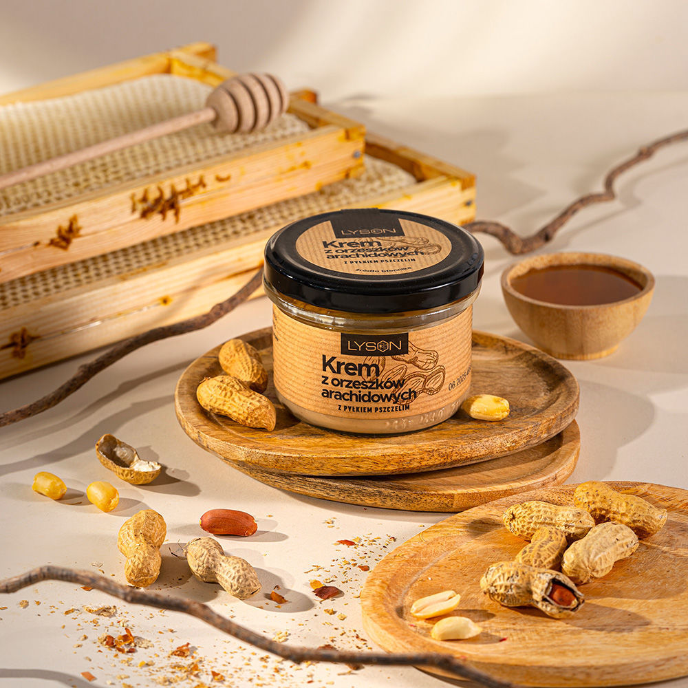 Orzechy arachidowe stanowiące blisko połowę składu kremu są bogate w białko i błonnik, co czyni produkt świetnym dodatkiem dla osób aktywnych fizycznie. Pyłek pszczeli, znany ze swoich prozdrowotnych właściwości, wspomaga układ odpornościowy i jest doskonałym źródłem witamin i mikroelementów. To właśnie te dwa składniki czynią krem wyjątkowym i wartościowym suplementem codziennej diety.