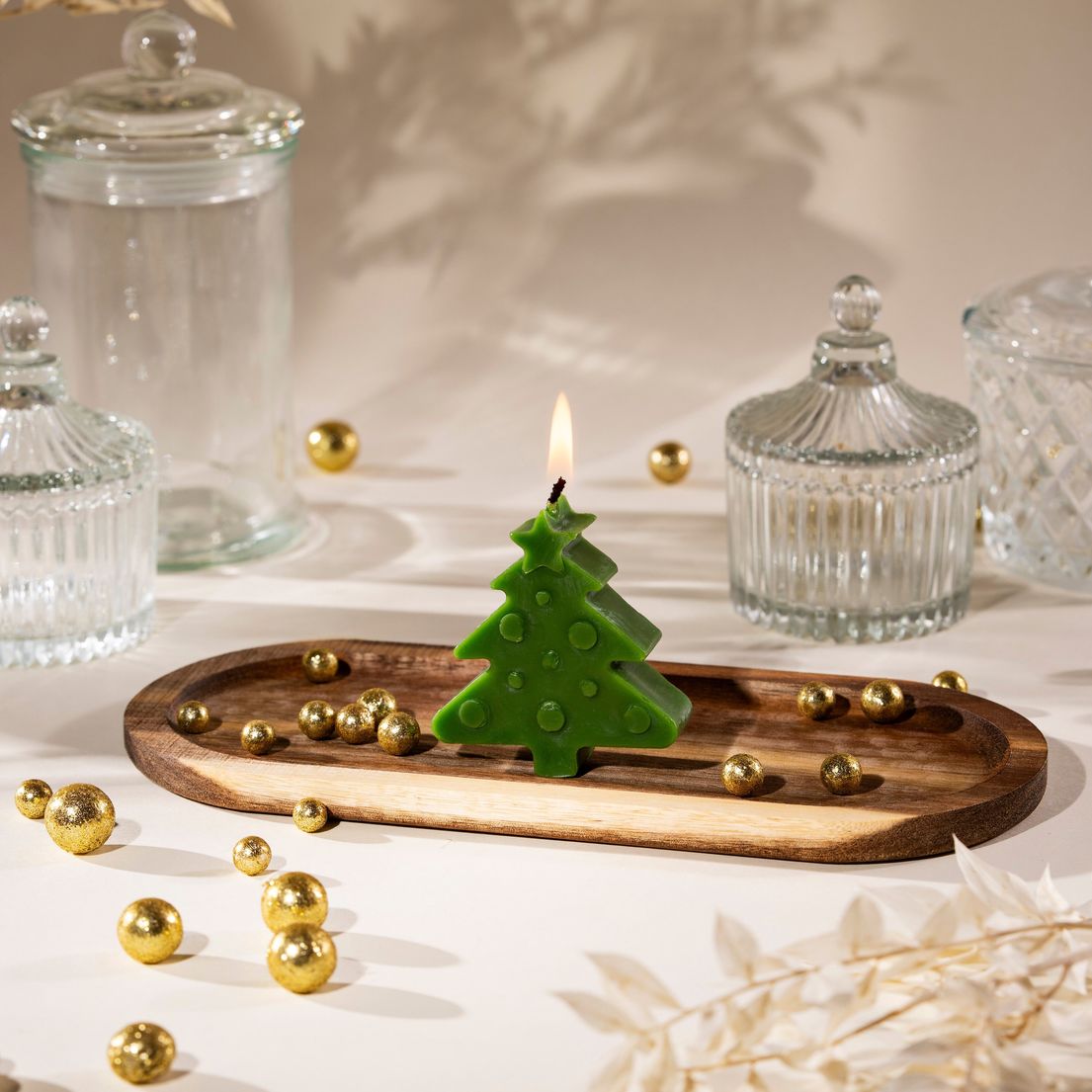 Świeca z wosku pszczelego choinka płaska z bombkami zielona