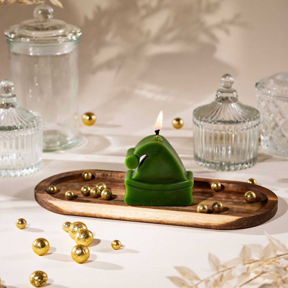 Świeca z wosku pszczelego czapka mikołaja zielona