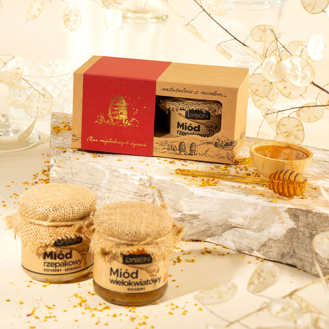 Zestaw Naturalnych Miodów Małe Beskidzkie Skarby (2x250g banderola czerowna)