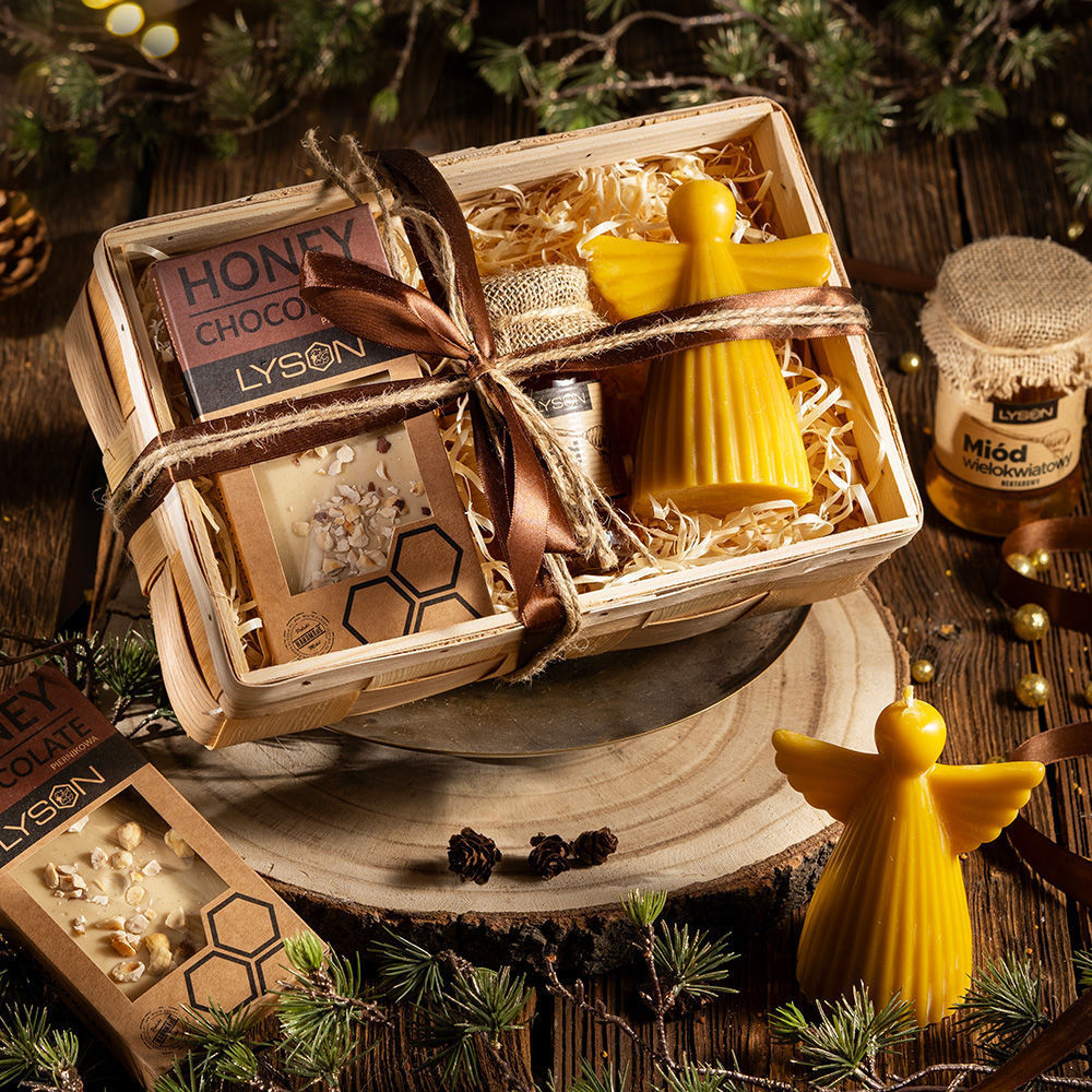 W tym uroczym zestawie znajdziesz wszystko, czego potrzebujesz, by poczuć się jak w świątecznym raju. "Anielska Słodycz na Święta" to kompozycja miodowej dobroci, piernikowej czekolady i pachnącej świecy, która doda każdej chwili odrobinę anielskiego blasku i słodyczy.