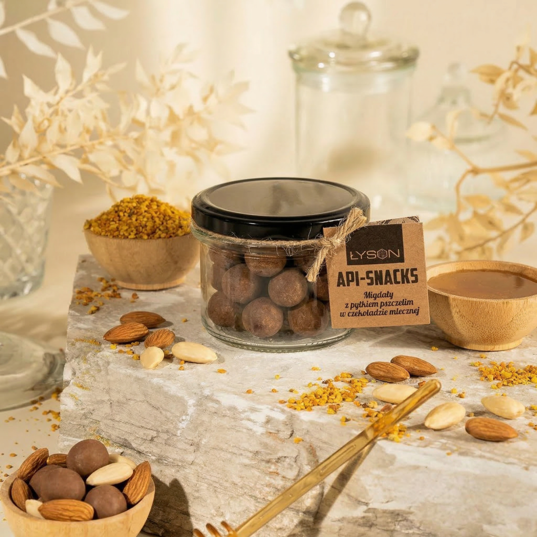 Migdały w czekoladzie to przepyszne kompozycje zachowujące najwyższe standardy żywieniowe w przypadku współczesnego trendu zdrowego żywienia. W naszym produkcie użyliśmy również mlecznej belgijskiej czekolady, pełnowartościowego miodu gryczanego, cynamonu oraz pyłku pszczelego. Dzięki ponad dwudziestopięcioletniemu doświadczeniu w branży w pełni doceniamy właściwości produktów pszczelich. Stosujemy je z powodzeniem w naszych flagowych produktach. Dzięki stosowaniu najnowszej technologii pasiecznej uzyskujemy produkty najwyższej jakości, które są jednocześnie smaczne i pożywne. Miód gryczany oraz pyłek pszczeli to bogata skarbnica aminokwasów, enzymów oraz pełnego spektrum witamin i wartości odżywczych. Zaufaj naturze – zasmakuj w naturalnych produktach Pasieki LYSON.
