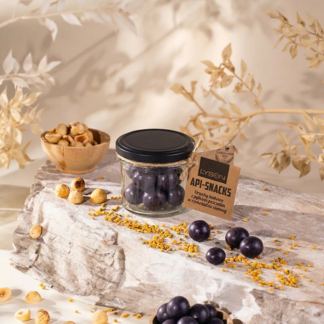 Api Snacks Orzechy laskowe w czekoladzie ciemnej z pyłkiem 50g