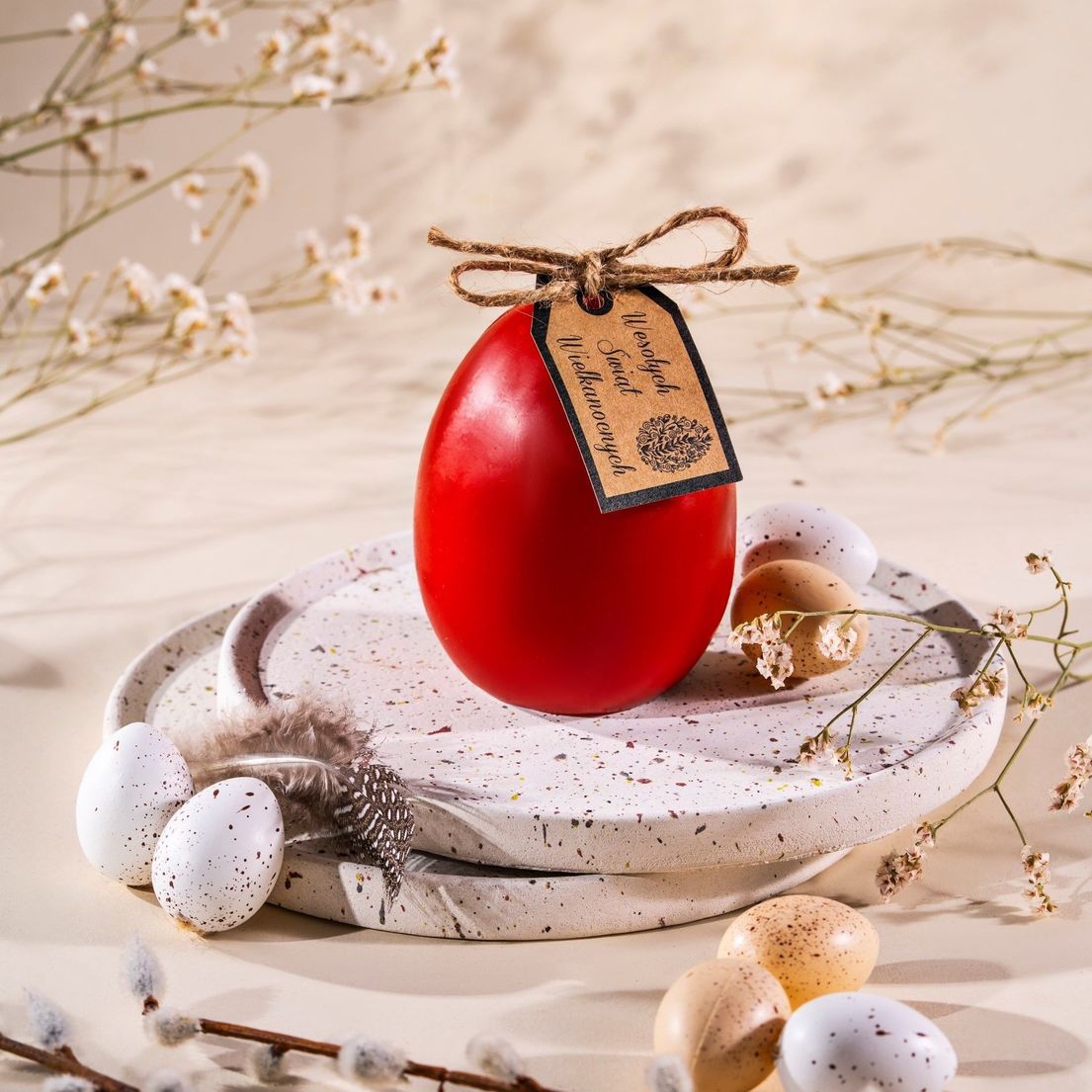 Świeca wielkanocna jajko gładkie czerwone