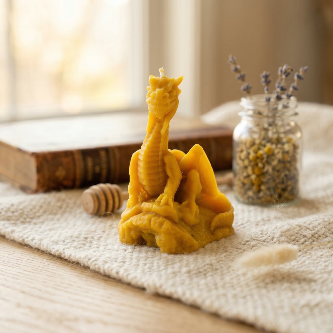 Nasza unikatowa świeca w kształcie Smoka Wawelskiego to połączenie tradycji, legendy i rzemiosła. Stworzona z największą starannością w naszej manufakturze, ta świeca z naturalnego wosku pszczelego i węzy pszczelej, z bawełnianym knotem, to prawdziwe dzieło sztuki, które przyciąga wzrok i wzbudza zachwyt.